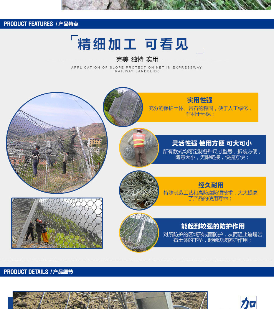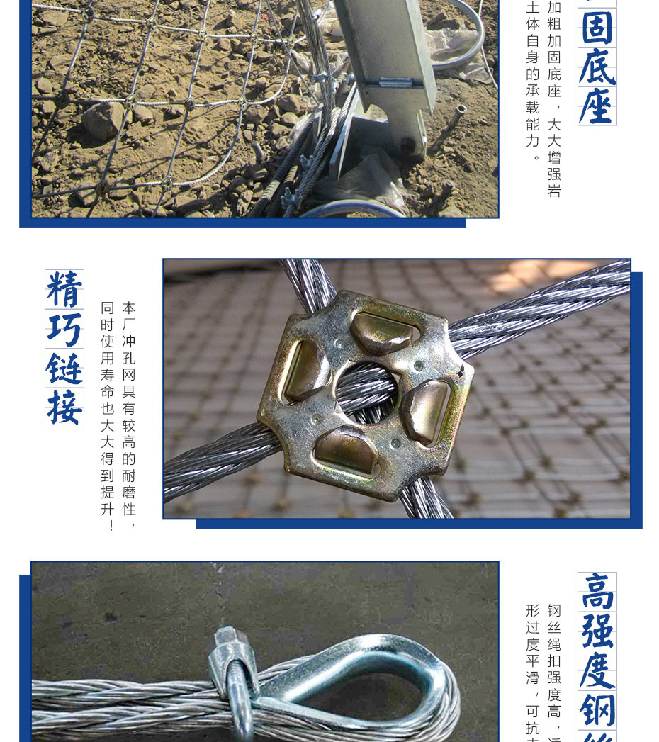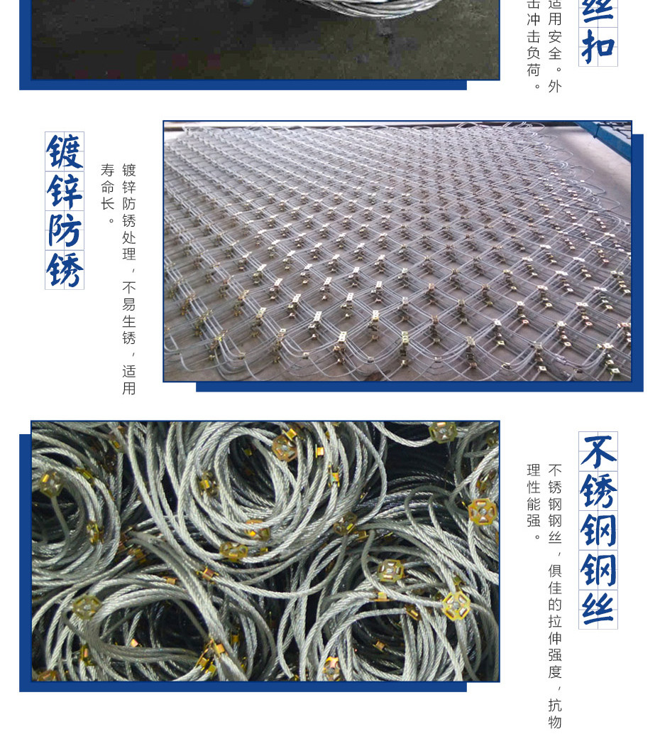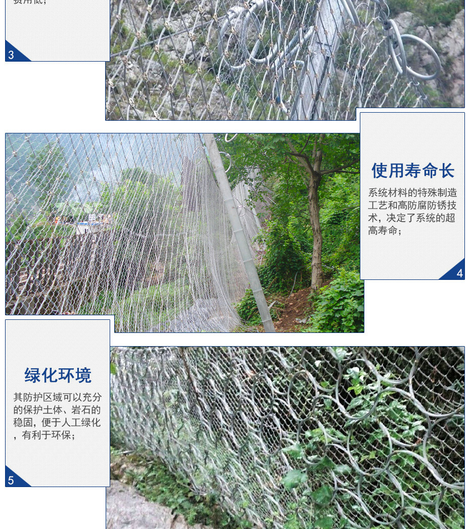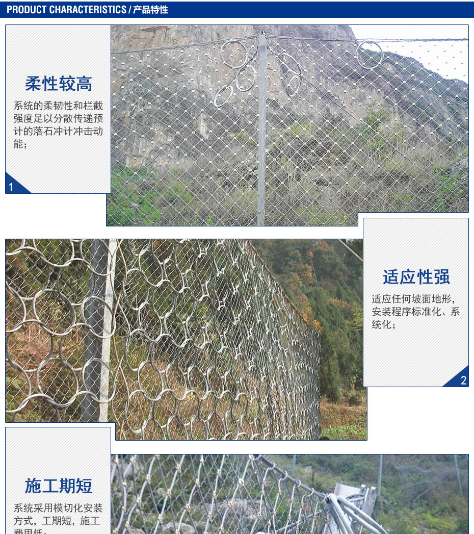 RXI-200型被動防護網(wǎng)可以對2000KJ動力勢能以內(nèi)落石進行防護。每組RXI-200型被動防護網(wǎng)都配備規(guī)格很好的減壓環(huán)。
