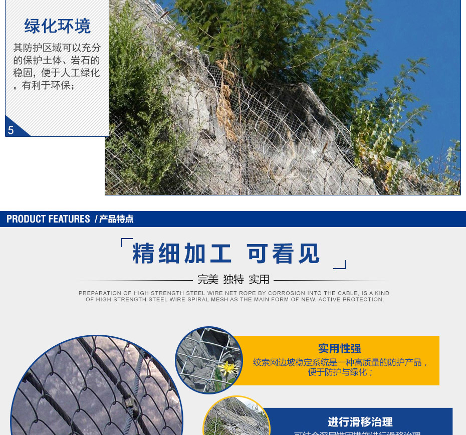 SPIDER絞索網(wǎng)邊坡穩(wěn)定系統(tǒng)是一種以S3高強(qiáng)度鋼絞線螺旋網(wǎng)片為主體的,全新的主動(dòng)防護(hù)形式。對(duì)于高陡巖質(zhì)邊坡加固、孤石和松動(dòng)的危巖加固來(lái)講,SPIDER絞索網(wǎng)邊坡穩(wěn)定系統(tǒng)是一種防護(hù)產(chǎn)品。