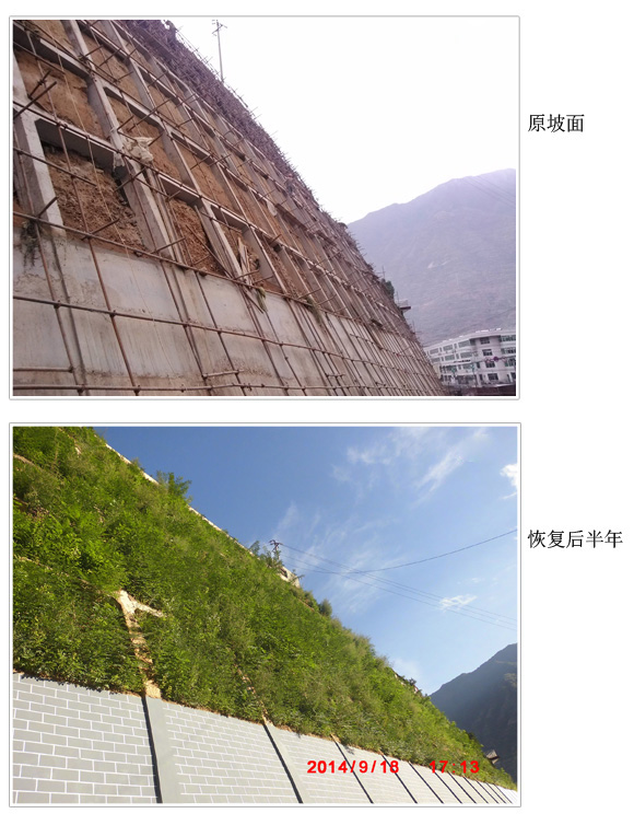 客土噴播方法的選擇:根據(jù)當?shù)氐臍鉁?,降雨量,坡比、巖石裂隙,巖石硬度,植物的選擇,以立地條件的不同來決定采用“金屬網(wǎng)鋪設工程+植被基材噴附工程”以增大生長發(fā)育基礎與坡體的連接性。選擇適合的草種配合比,改善綠色植物的生長發(fā)育環(huán)境和促進目標樹種生長的雙重功能,以確保噴射效果和質量??屯羾姴ゲ牧现邪ㄖ参锓N子、有機營養(yǎng)土、土壤改良劑、穩(wěn)定劑、微生物菌劑、肥料等??屯羾姴ゲ捎?2m3空壓機和噴射機以及攪拌機等。